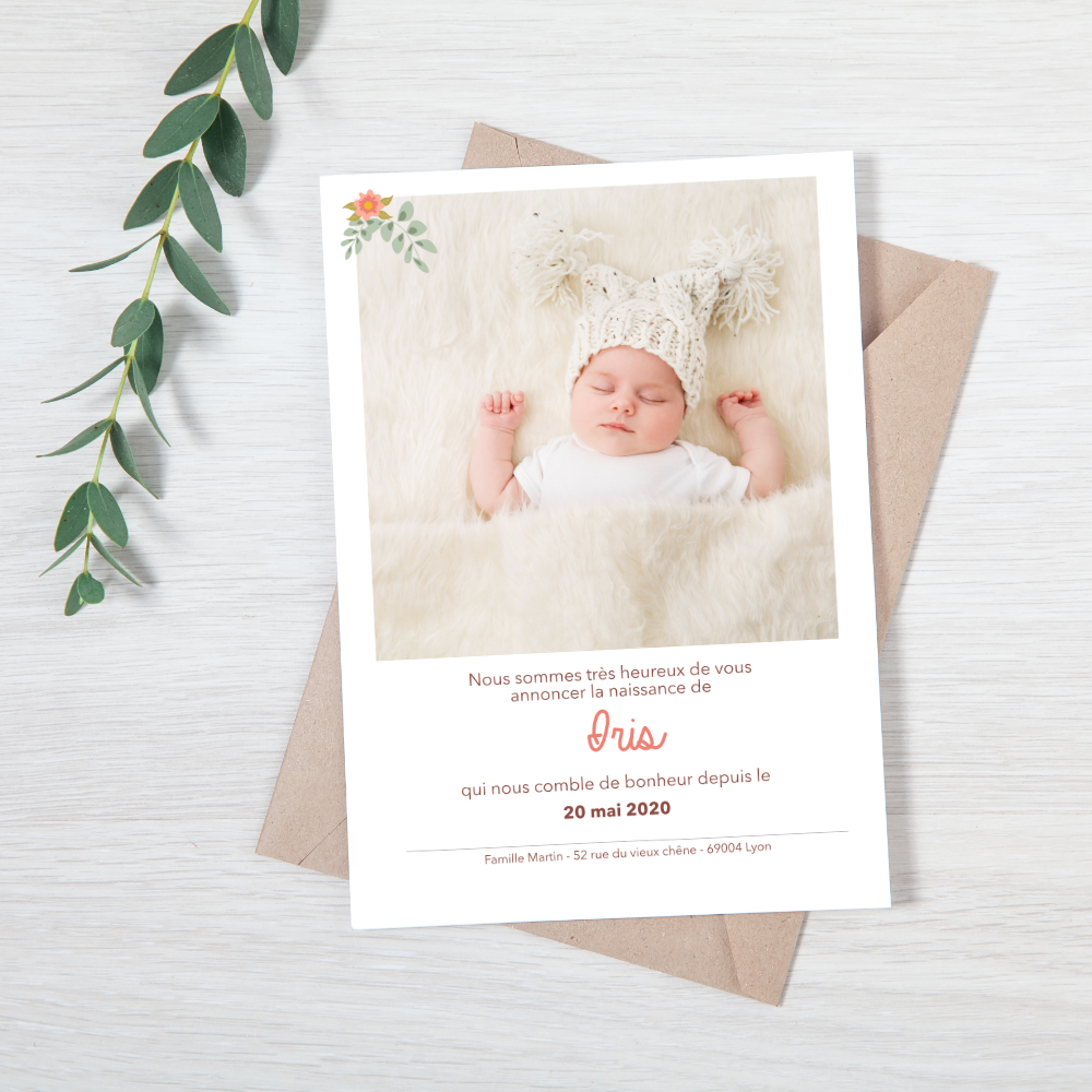 Découvrez notre faire-part avec la première lettre du prénom du nouveau né, idéal pour annoncer la naissance d’une petite fille.